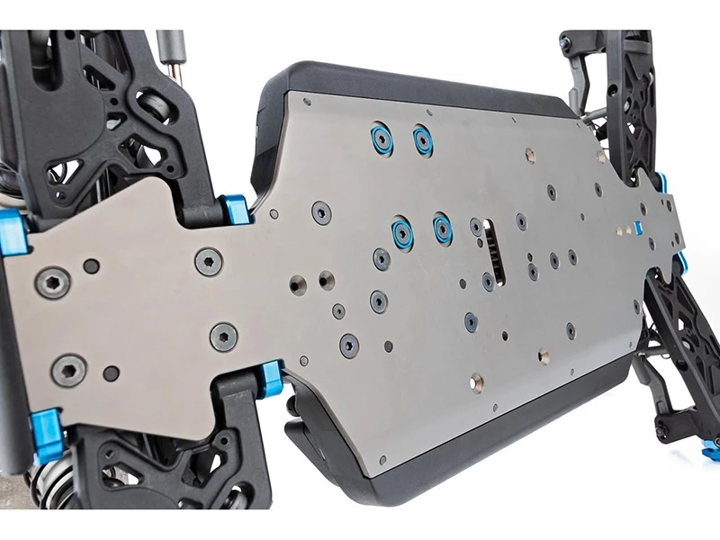 - New 7075 aluminum hard anodized chassis features updates to strengthen the front and rear droop tab areas and an increased width along kick up area