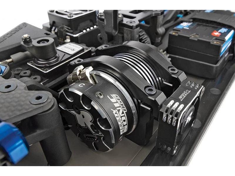 - New two-piece clamping motor mounts make for secure mounting and allows for mounting of a 30mm motor fanThe gear mesh is adjusted from the bottom of the chassis, just like on RC8B4