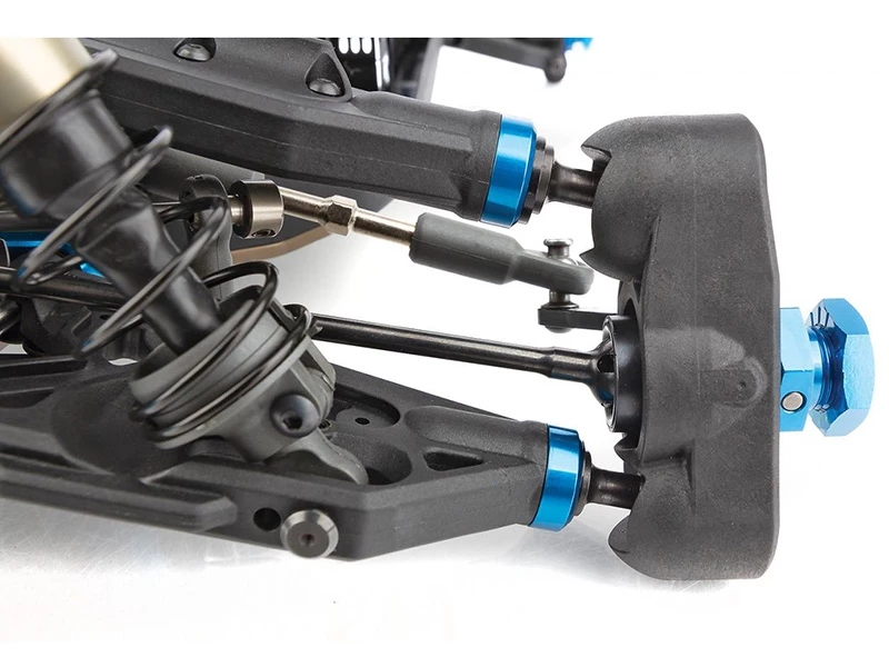 - New spring cups and shock rod end design has a locking screw to keep the cups in place during a crash and has improved material; the same tough material as our 1/10 rod ends