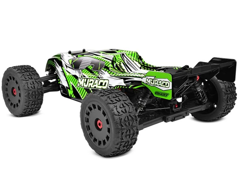 Few vehicles can match a 1/8 scale Truggy for incredible top speeds and the ability to handle virtually any type of track, surface, or terrain like Team Corally’s Muraco XP 4WD 1/8 Scale Brushless Truggy RTR. Based upon the popular Shogun, the Muraco features a new, distinctive bodyshell and graphics package that will stand out on tracks, skate parks, or bash spots. Able to handle massive 6S LiPo power and including a 2050KV brushless motor, the Muraco XP will simply dominate lesser models. With its aggressive appearance, race-inspired design, and plush suspension the Muraco XP will tackle the most complex stunt or challenging terrain and come back for more.