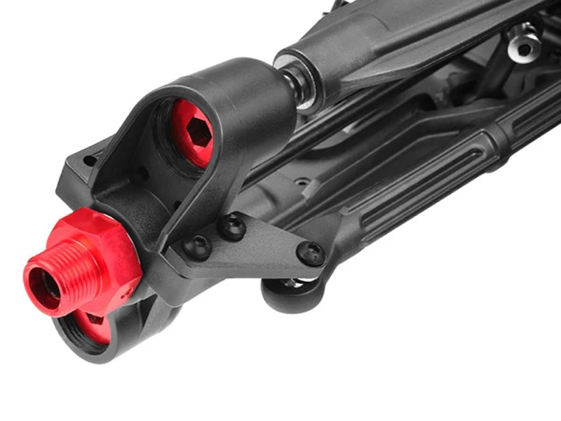 The Muraco XP features a robust pivot ball-style front suspension utilizing steel pivots and steering turnbuckles in addition to durable composite suspension arms. The rear suspension features composite outboard hubs and one-piece composite upper suspension links. At each corner, durable HiCC8 composite suspension arms and threaded, adjustable 16mm big bore oil-filled shock absorbers produce plush, compliant handling.