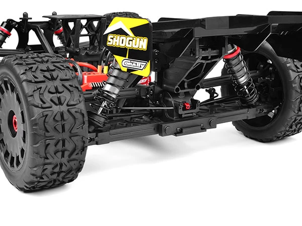 The durable, all-metal four-wheel drivetrain, fully independent suspension, racing chassis, stump-pulling power, and aerodynamic racing bodyshell design, the Shogun XP may be the ultimate electric 1/8 scale monster truggy fordrivers looking for an unmatched driving experience.