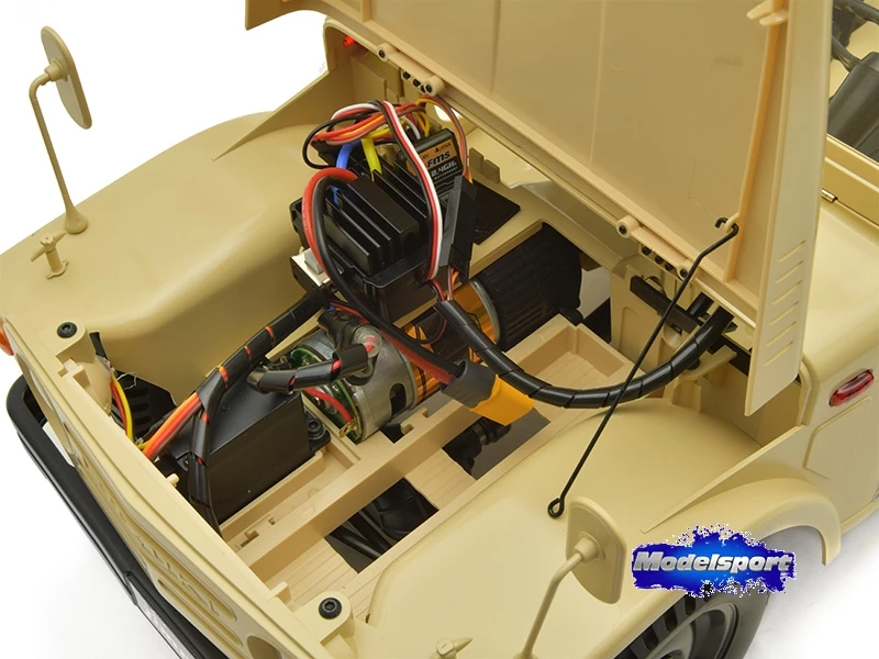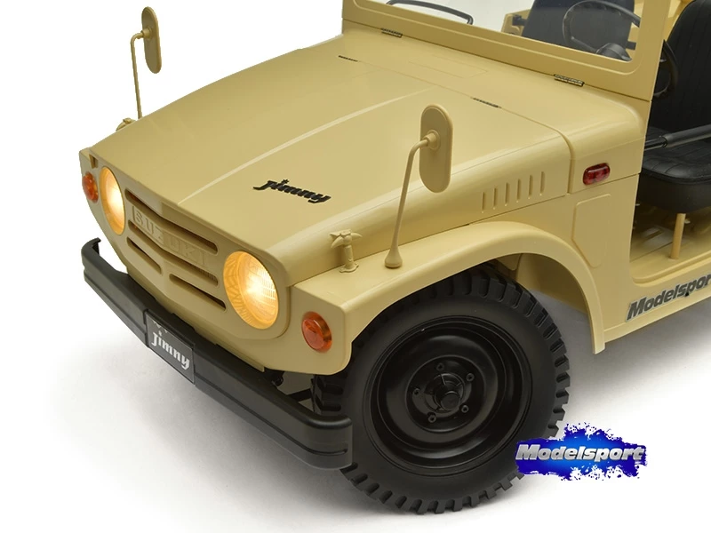 FMS is proud to present this 1/6 scale officially licensed Jimny LJ1. It boldly adopts a metal beam, non-load bearing chassis, front and rear leaf spring suspension and universal joints. The soft-rubber-wrapped seats feature a cushion like softness and can be collapsed, making them a perfect match for 1/6 figures.