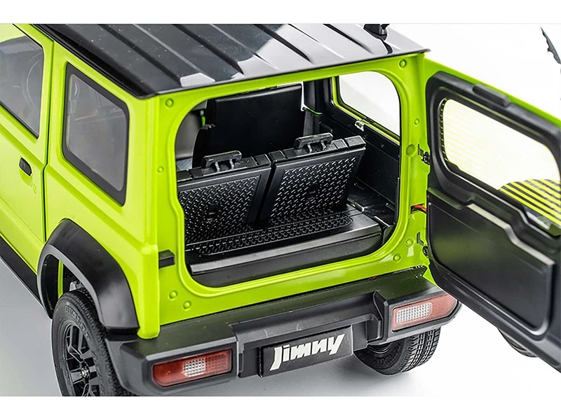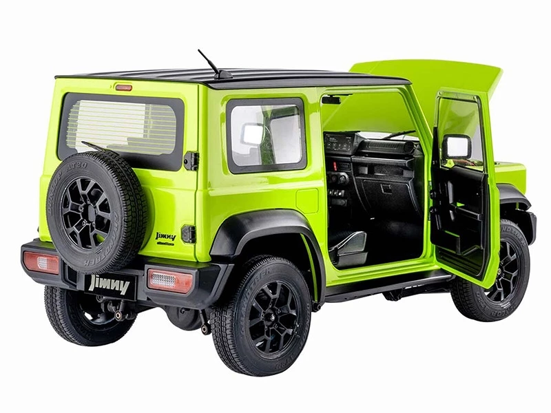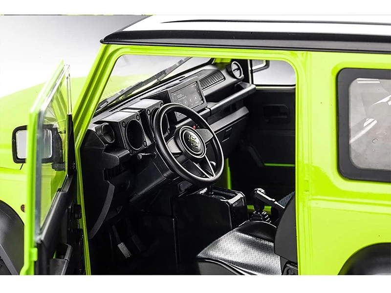 When you open the doors and inspect the cabin, you’ll find more sophisticated detailing. The forward and rear seats can all be reclined to create a spacious interior compartment. Just like those in the full-size Jimny, the driver’s seat and front passenger seat can be moved forward or back to accommodate your choice of 1/12 scale figures. The steering wheel is driven by an independent servo, linked to the front wheel steering — another remarkably authentic feature of the strikingly detailed interior and dashboard.