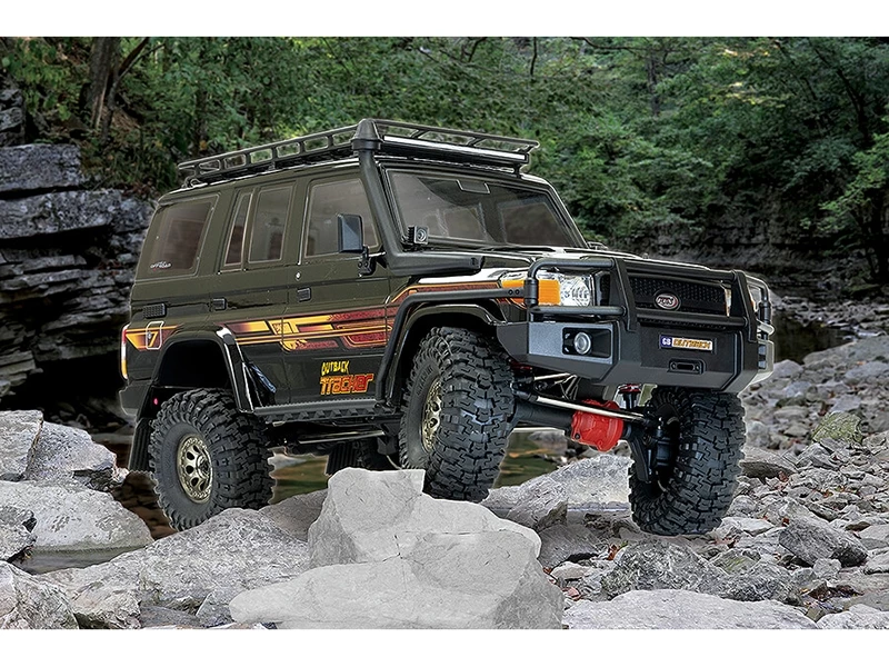 This workhorse has it all and can pull through the most demanding of terrain and surfaces. With a switch-able, servo operated 2-stage trans-mission, high and low speeds are easily set for whenever the need pre-sents itself. Front and rear differentials help with more drivability, but what if you are stuck in a rut or snagged on rocks? No problem, just switch via the transmitter and have on board servos lock the rear or front diff axles, or both to help get the drive and traction you need to navigate your way out of trouble.