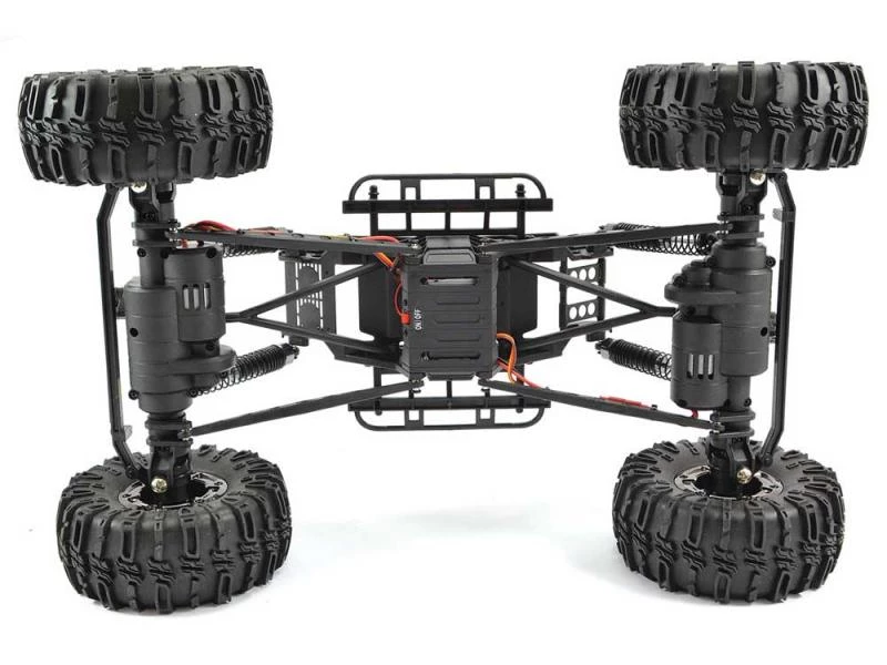 Multi-link suspension matched with oil filled shocks provides huge articulation for you carve your way through the rocks. Supersoft, heavy lugged 2.2” tyres mounted on beadlock wheels pro-vide the traction and bite for you to apply the power.