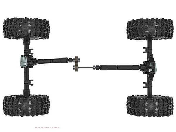 The front and rear axles have been crafted to produce a minimum amount of scrub radius, allowing the steering servo to function to its full extent.