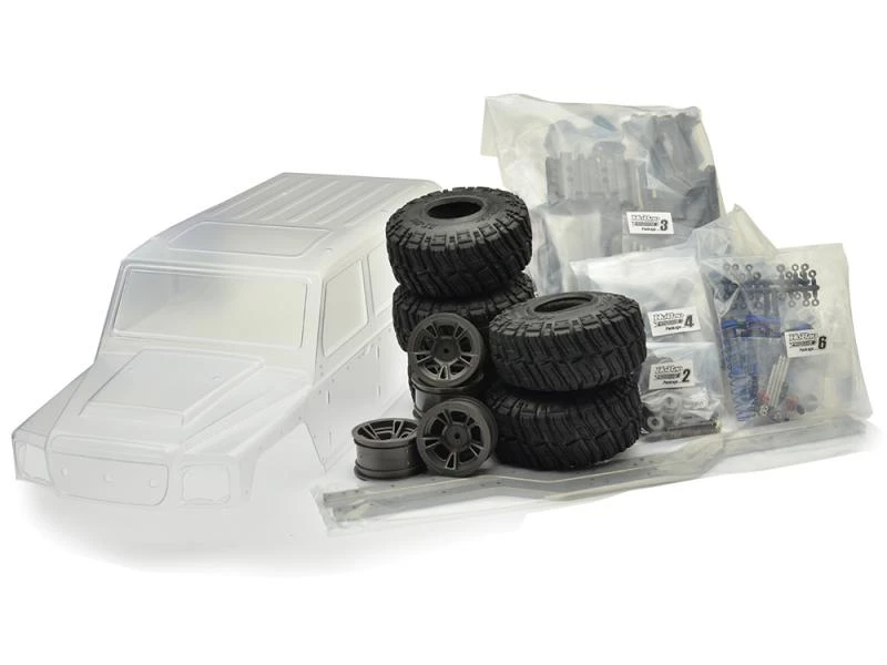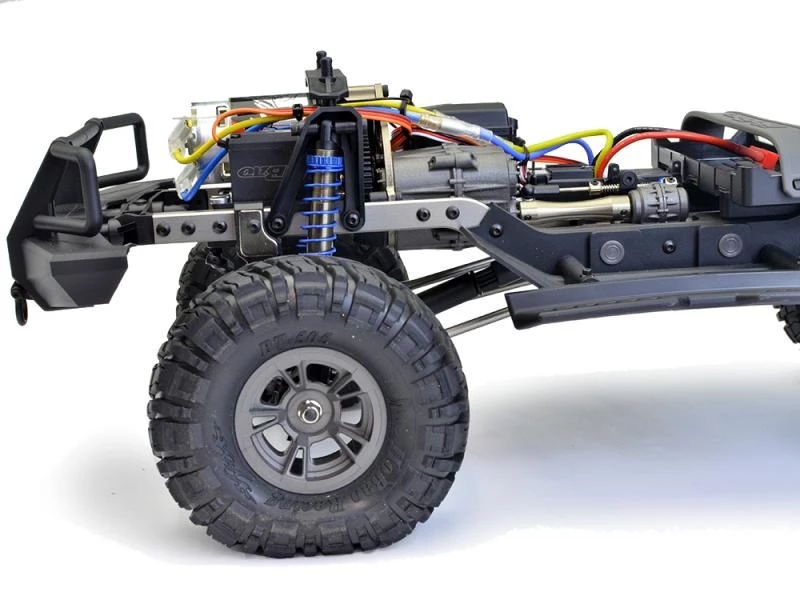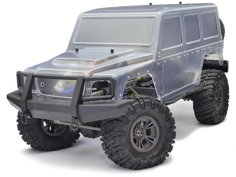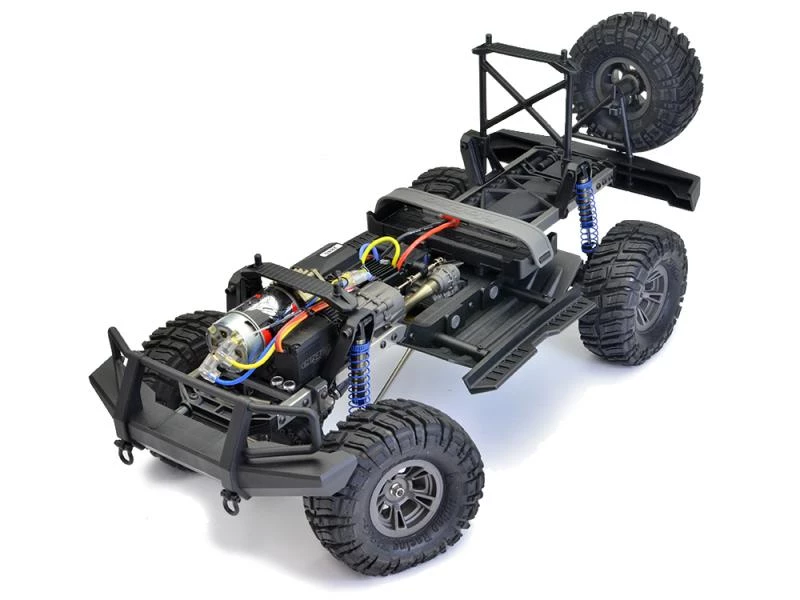 Available in either unassembled kit form or factory finished ready-to-run. The RTR version is available with a grey or blue finished scale inspired bodyshell that is feature rich with numerous scale moulded touches such as front headlight buckets for LED lights, moulded inner and outer wheel arches, roof bars, snorkel, door handles, wipers, running boards, mirrors and grill.