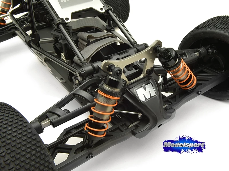 As an electric rolling chassis you are free to decide what electronic package is best for you and your budget. Underneath the roll cage you will find a chassis that can accommodate most of todays current crop of high performance brushless motors, speed controllers and LiPo batteries. The moulded battery tray features three quick release Hook & Loop Fastener straps perfect for 2S, 3S and 4S packs. Colour coded, anodised aluminium chassis parts complement the roll cage assembly for an eye catching look. The newly designed front C-Hub suspension assembly, 3-differential driveline and 17mm big bore shocks soak up all that is in their path.