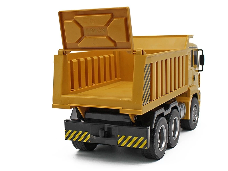 Features a 4-channel directional movement. The dumper truck features a rising and tilting rear bed where the rear section rises to drop your load at the worksite.