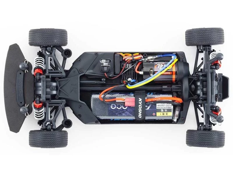 For the pure enjoyment of R/C car driving, the combination of a beautifully reproduced car body with the FAZER series chassis can’t be beaten. Kyosho has taken its standard touring car chassis and given it a full model makeover that has evolved performance to a new level. A simplified design with fewer parts has improved maintenance efficiency and reduced weight while core strength and rigidity has been increased through new materials and ribbing and stiffeners on front and rear. In addition, the symmetrical chassis design synergizes excellent front-rear balance through the suspension with responsive control, irrespective of power source. Featuring slipper clutch, front & rear gear differentials, oil shocks and full ball bearing specs, the high durability and impact resistance allows drivers to unleash the full potential of the chassis. Brake disc wheel hubs with two different offsets (0mm, +5mm) provide compatibility with 190mm and 200mm width body styles and allows the wheelbase to be adjusted to 260mm by replacing some parts (sold separately) for compatibility with other 1/10 scale body styles, in addition the body included. The Readyset package comes fully assembled and includes everything except charger and battery for the chassis, and batteries for the transmitter.