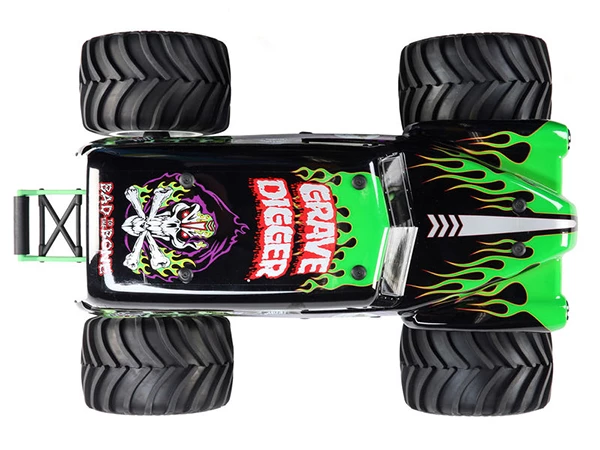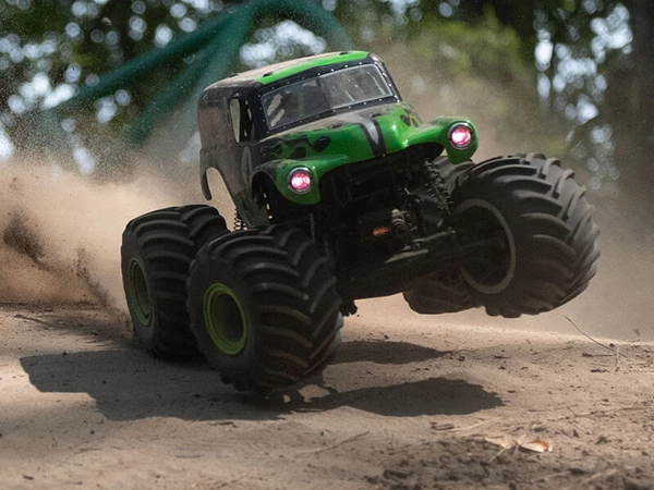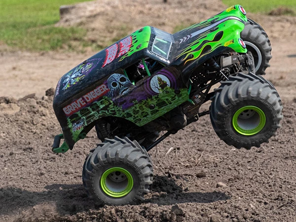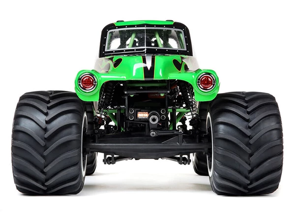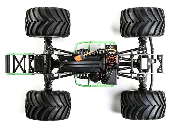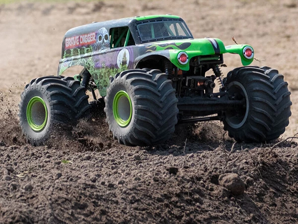 Completely designed from the ground up, the Losi® LMT 4WD Solid Axle Monster Truck is the first of its kind on the market combining all-out performance with incredible scale detail. Starting with the chassis, a twin vertical plate is designed to provide all of the performance adjustments needed to tune the truck for any situation. Whether you are a scale driver, a basher or a racer, the chassis is designed to accommodate multiple shock setups keeping you tracking straight, no matter the terrain. New multi-piece axle housings surround the 1/8th scale drivetrain. Additionally, the easy access center transmission comes stock with a center differential and allows for quick changes with the optional spool for that wheel standing action. For the true Monster truck experience, the axles also allow for optional 4-wheel steering and a new adjustable servo saver to keep the wheels pointed in the right direction. The Spektrum™ Firma™ Smart 130 Amp ESC and 3150kv 4-pole Brushless motor allow you to unlock blazing speeds. Drivers stay in control with a DX3™ transmitter and a Spektrum SR315 DSMR® 3-Channel Sport Receiver. A composite flip top cage adds scale realism and protection, as well as functionality so you can easily access your battery and electronics. Of course, the scale detail doesn’t stop there with headers, drivers and LED lights and we’ve teamed up with Monster Jam for your choice of a Grave Digger or Son-Uva Digger body. The LMT Monster Truck has just thrown down the gauntlet on solid axle monster trucks.