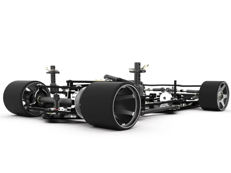 - – Fully adjustable front end (track width, ride height, toe, camber, caster, damping, bump steer and ackermann).