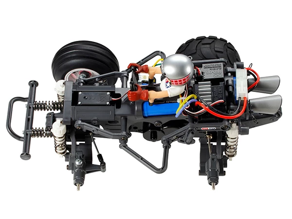 • Requires: 2-channel radio, steering servo, 7.2-volt battery pack with compatible charger, and TAMIYA PS Spray Paint.