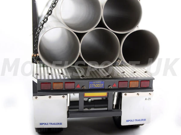 The Pole-Trailer is able to carry pipes of various length due to its collapsible pole. The trailer also features an aluminium chassis and 4 highly detailed wheels. 5 plastic pipes of 55mm in diameter and 75cm in length are included.
