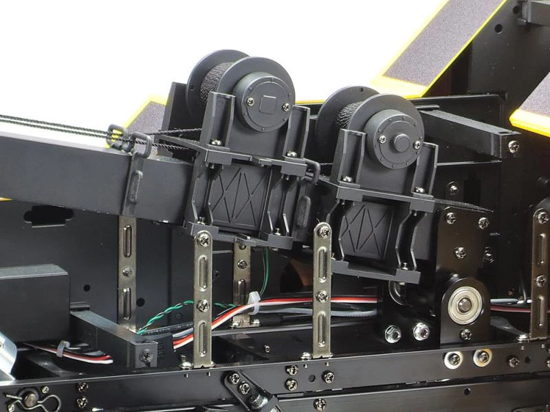 - This model’s front axles feature the first twin steering system seen in the Tamiya 1/14 Truck series.