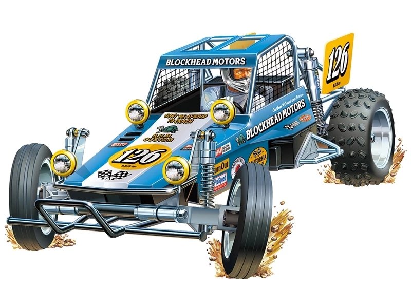 The Wild One is a R/C 2WD buggy assembly kit that has been a hobbyist favorite for years! We are celebrating the Wild One with this special release with a twist! The sticker set, this time around, is designed by Jun Watanabe’s brand “BLOCKHEAD MOTORS”, which has produced stickers and apparel, and customizations of Tamiya off road buggy models from the 1980s. Watanabe has taken part in the design of collaborative fashion, music, and skateboard projects to expand the horizons of R/C cars. This kit is sure to be a fun addition to anyone’s collection!