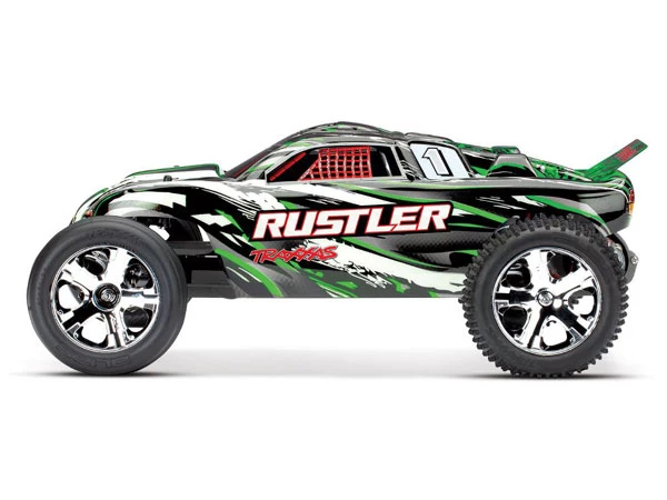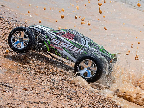 The Traxxas Rustler has a winning formula for rugged, dependable fun! The Rustler brings RC fun to a whole new level with faster speeds, innovative technology, and hobby-grade durability for years of fun. With a top speed of 35+mph*, Rustler rips off-road roost with its powerful Titan® 12-turn modified 550 motor and XL-5 Electronic Speed Control. Traxxas’ exclusive waterproof electronics allow Rustler to blast through puddles, mow through mud and shred snow for wild all-weather fun. Your RC adventures are limited only by your imagination. Step up to genuine Traxxas quality and performance and discover a whole new level of fun with the Traxxas Rustler!