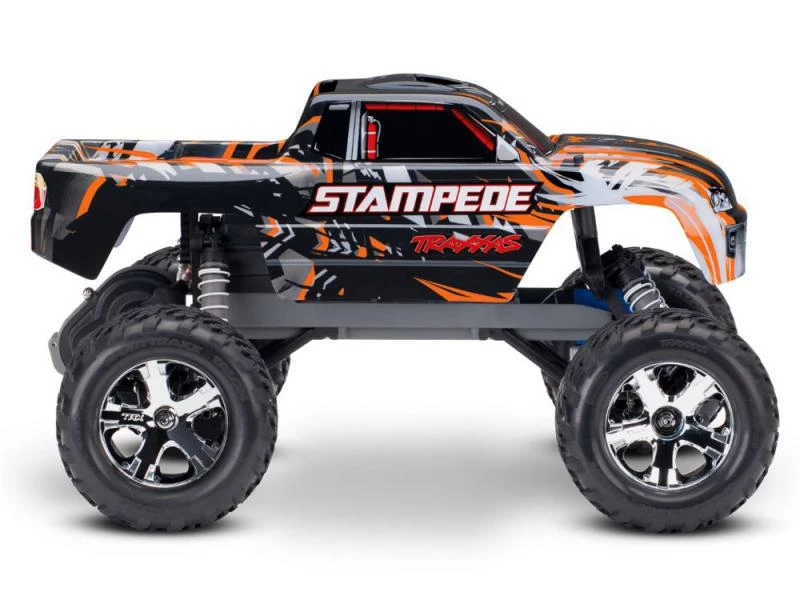 The Stampede’s exclusive watertight, sealed electronics provide the freedom to drive through water, mud, snow, and other wet-running conditions. The XL-5 electronic speed control and the mini receiver are sealed against the elements. It opens up a whole new world of adventure and fun.Titan® 12-Turn 550 Modified MotorThe Stampede includes a powerful Titan 12T 550 modified motor with internal cooling fan – an industry first for this class of truck! The Titan’s oversized armature (30% larger compared to 540-sized armatures) features 12 turns of pure copper wire for big torque and increased power-handling capabilities. The integrated cooling fan lowers running temperatures for more fun behind the wheel. The Titan 12T requires very little maintenance and provides consistent torque and high speeds run-after-run, without fading. Beyond the specs, the Titan 12T is made for rock-crushing torque, hardcore wheelie launches, explosive jumping, and just about any other 4-wheel fun that demands real horsepower.